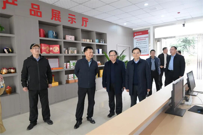 会前,在南阳职业学院校领导的陪同下,邓志军一行实地参观了学校附属幼儿园、仲景中医药与健康学院实验实训室、校医院、“宛农有礼”直播电商基地、南阳名优特农产品直播电商甄选展销中心、伏牛山药用植物省级林木种质资源库、伏牛山特色中药材科研及实习实训基地等教学科研场所。参观过程中,邓志军详细了解了学校在专业建设、实训教学、人才培养模式创新及校园文化建设等方面的举措与成效,对学校鲜明的办学特色、完善的实践教学条件以及浓厚的育人氛围给予了高度评价。他认为,学校在深化产教融合、推进校企合作方面的扎实探索,与企业发展需求高度契合,为双方拓展合作领域、提升合作层次奠定了坚实基础。